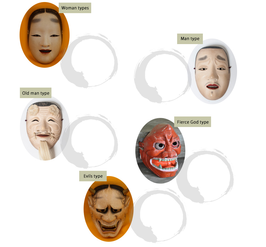 There are more than 200 variations of Noh masks. And it can be classified “old man”, “Samurai”, “woman”, “man”, “vengeful ghost”, and “god”.Introduce some of them.